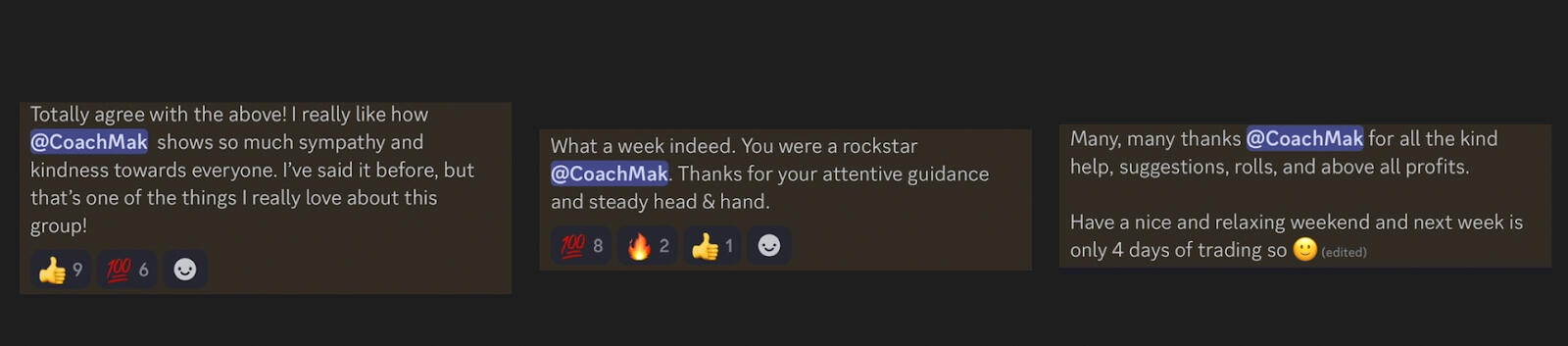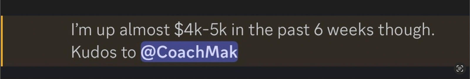 Regular live sessions with Coach Mak where you can ask questions and get personalized guidance on your trades.