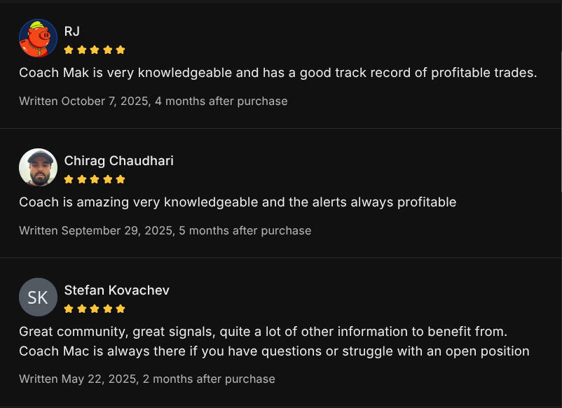 Is this just trade alerts or actual education?Both! You get real-time alerts of Mak's actual trades, but more importantly, you understand the reasoning behind each trade. Plus access to educational resources, live Q&A sessions, and technical analysis.